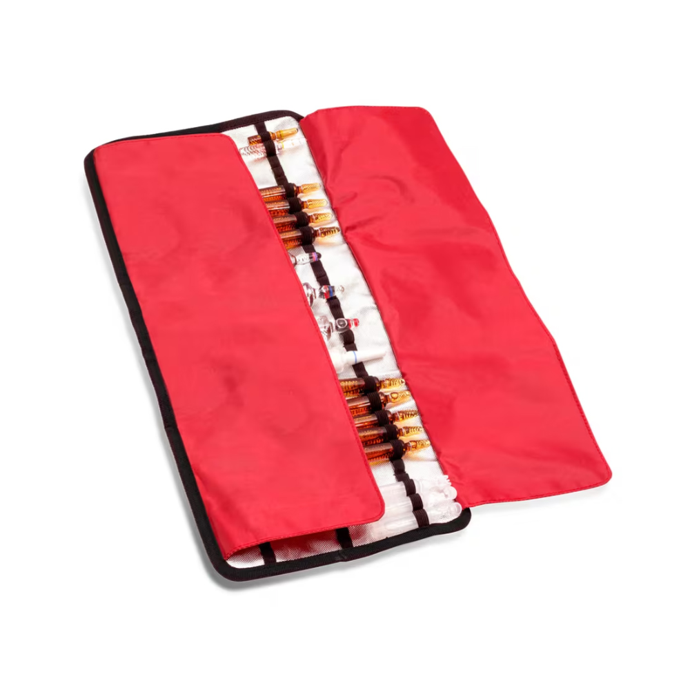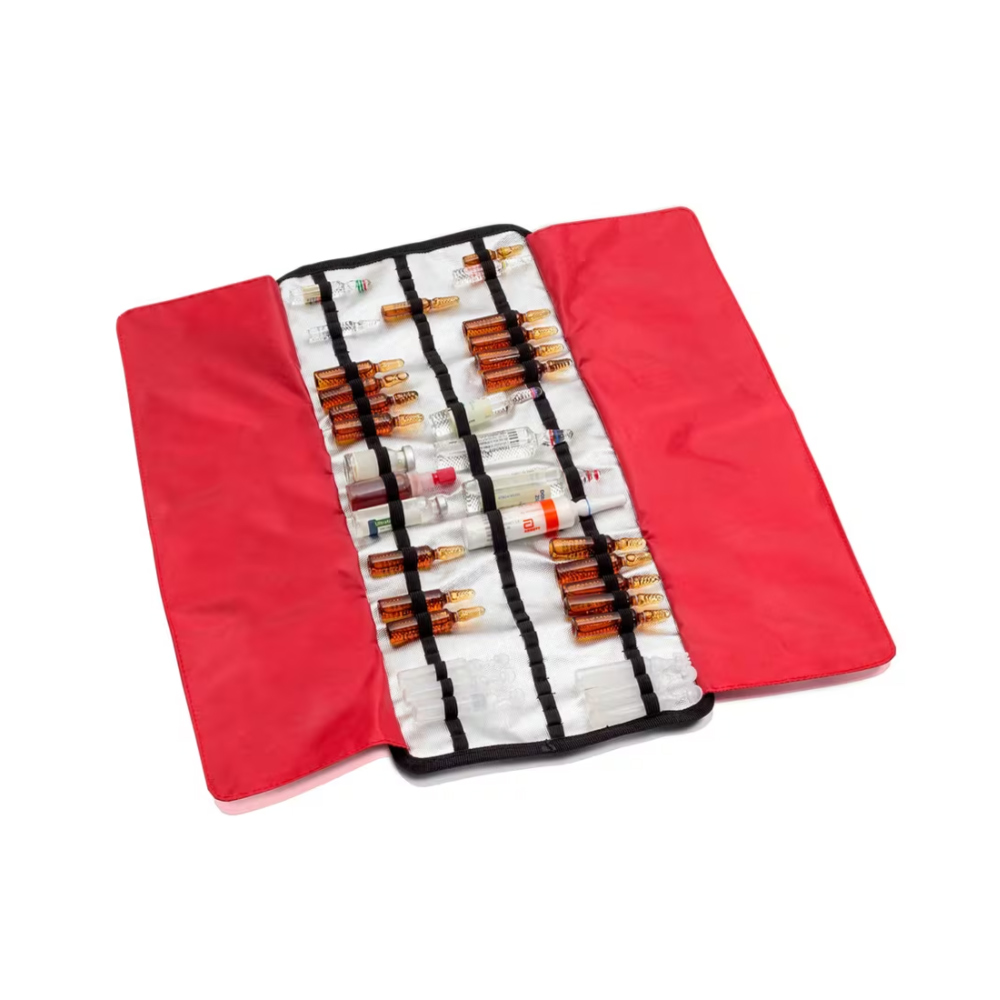 Kokkupandav rahakoti disain koos kaitsvate sissevolditavate tolmukatetega pakub puhast ja madala profiiliga pakendit, mida saab hõlpsalt seljakoti, koti või vesti taskusse panna. Iga viaali hoitakse eraldi elastsete rihmadega, mis vähendab oluliselt purunemist ja aitab õiget ravimit kiiresti ja täpselt kätte saada.